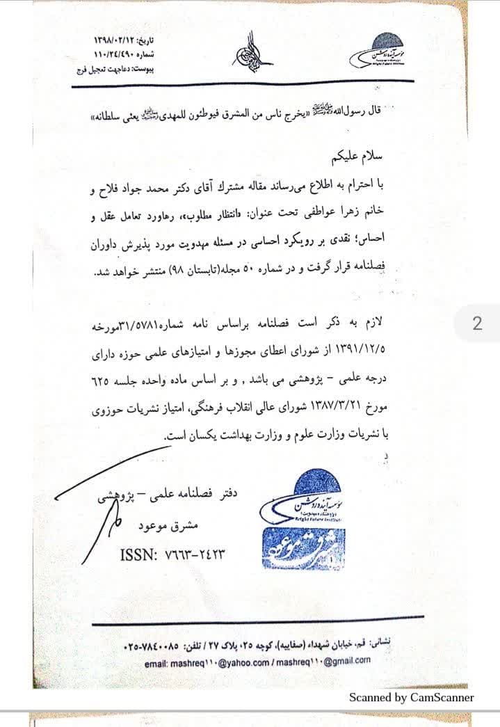 1)انتظار مطلوب رهاورد عقل و احساس