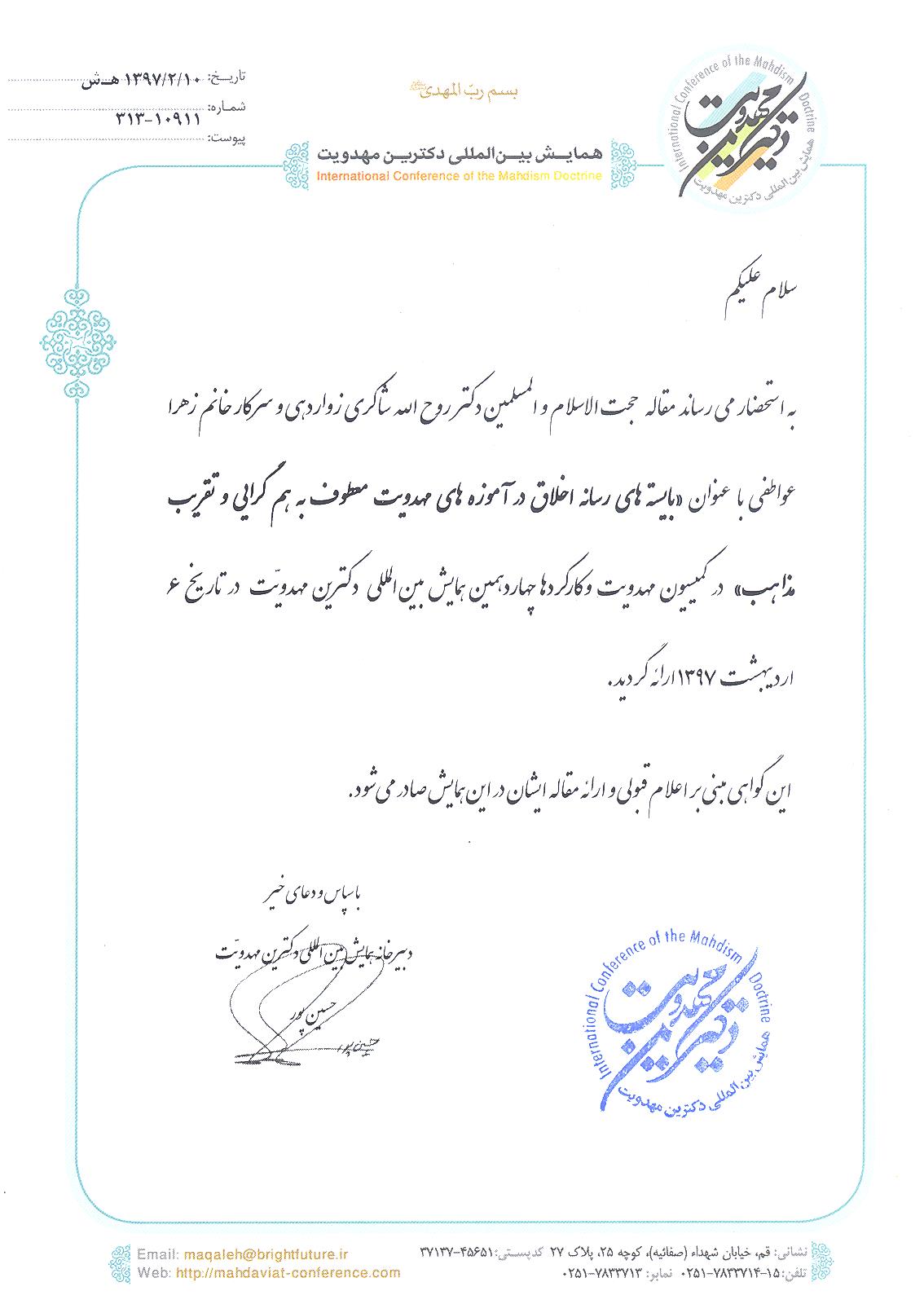 نشانی: قم - بلوار الغدیر - روبروی ورزشگاه یادگار امام - دانشگاه حضرت معصومه (س)